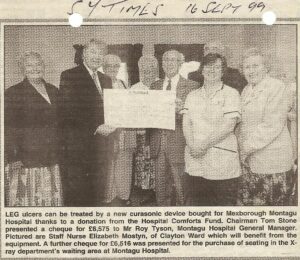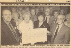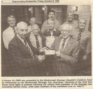 A cheque for £15,404 was presented to Mexborough Montagu Hospital on Tuesday by Mexborough Montagu Hospital Comforts Fund. The money was presented to the Adwick and Barnburgh Wards for pillows and duvets (£2,352) and the Medical Wards and Wentworth Unit for two bladder scanners.